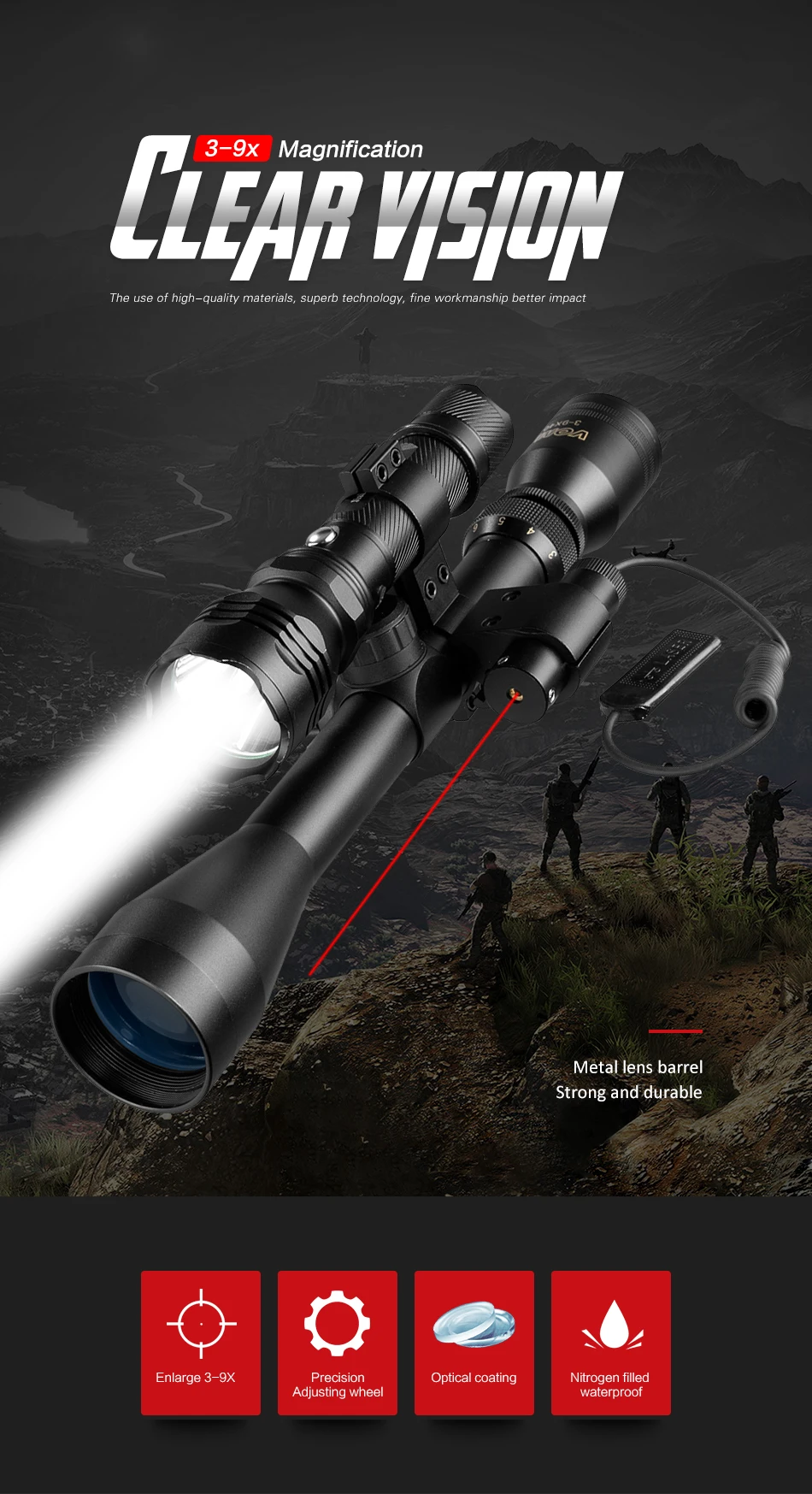 FIRE WOLF 4X45 4X Fiber Airsoft Rifle Scope Sight with 20mm Picatinny Rail for Hunting Riflescope